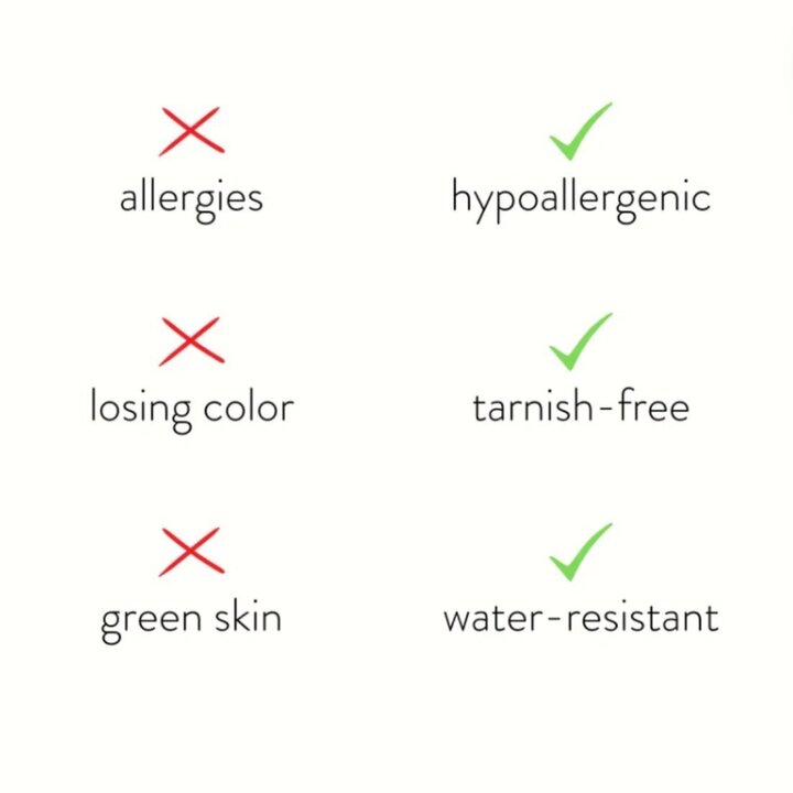 Tous nos bijoux sont fabriqués en acier inoxydable de haute qualité. Les pièces en or bénéficient d’un plaquage PVD, garantissant une couleur durable pendant plusieurs années. Ce matériau est résistant aux rayures et conserve son éclat sans se décolorer facilement. Tous nos produits sont exempts de nickel, de plomb et de cadmium.