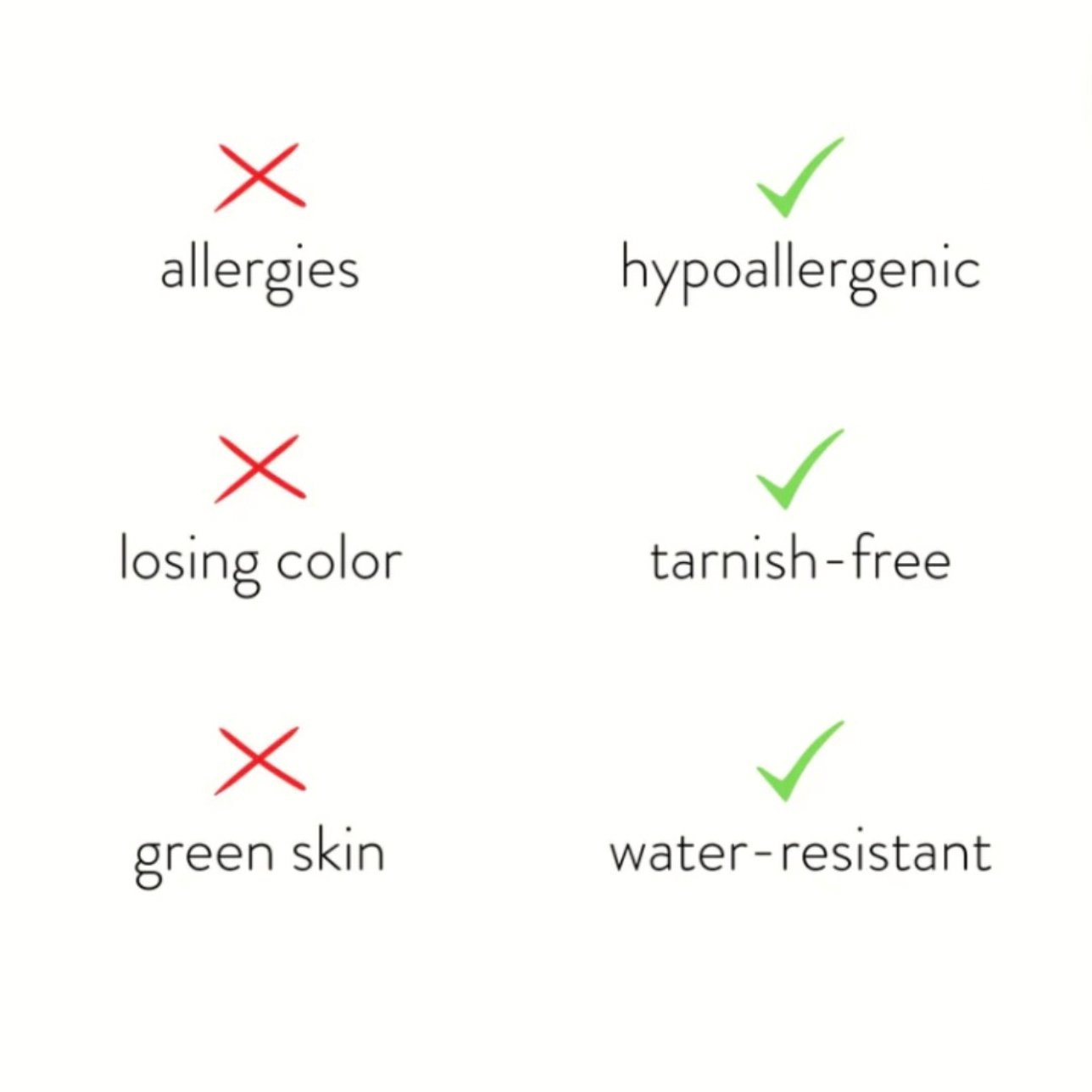 Tous nos bijoux sont fabriqués en acier inoxydable de haute qualité. Les pièces en or bénéficient d’un plaquage PVD, garantissant une couleur durable pendant plusieurs années. Ce matériau est résistant aux rayures et conserve son éclat sans se décolorer facilement. Tous nos produits sont exempts de nickel, de plomb et de cadmium.